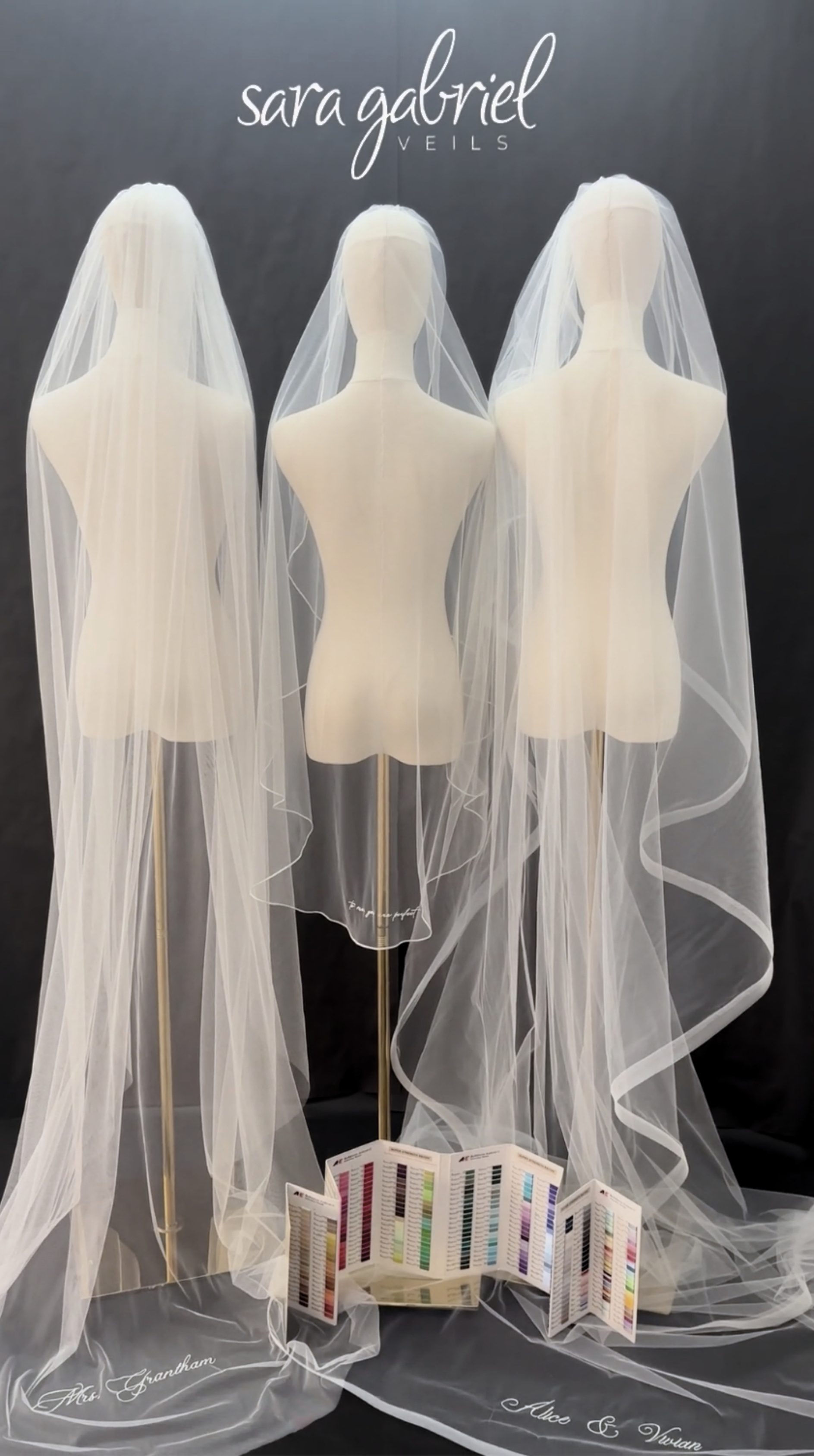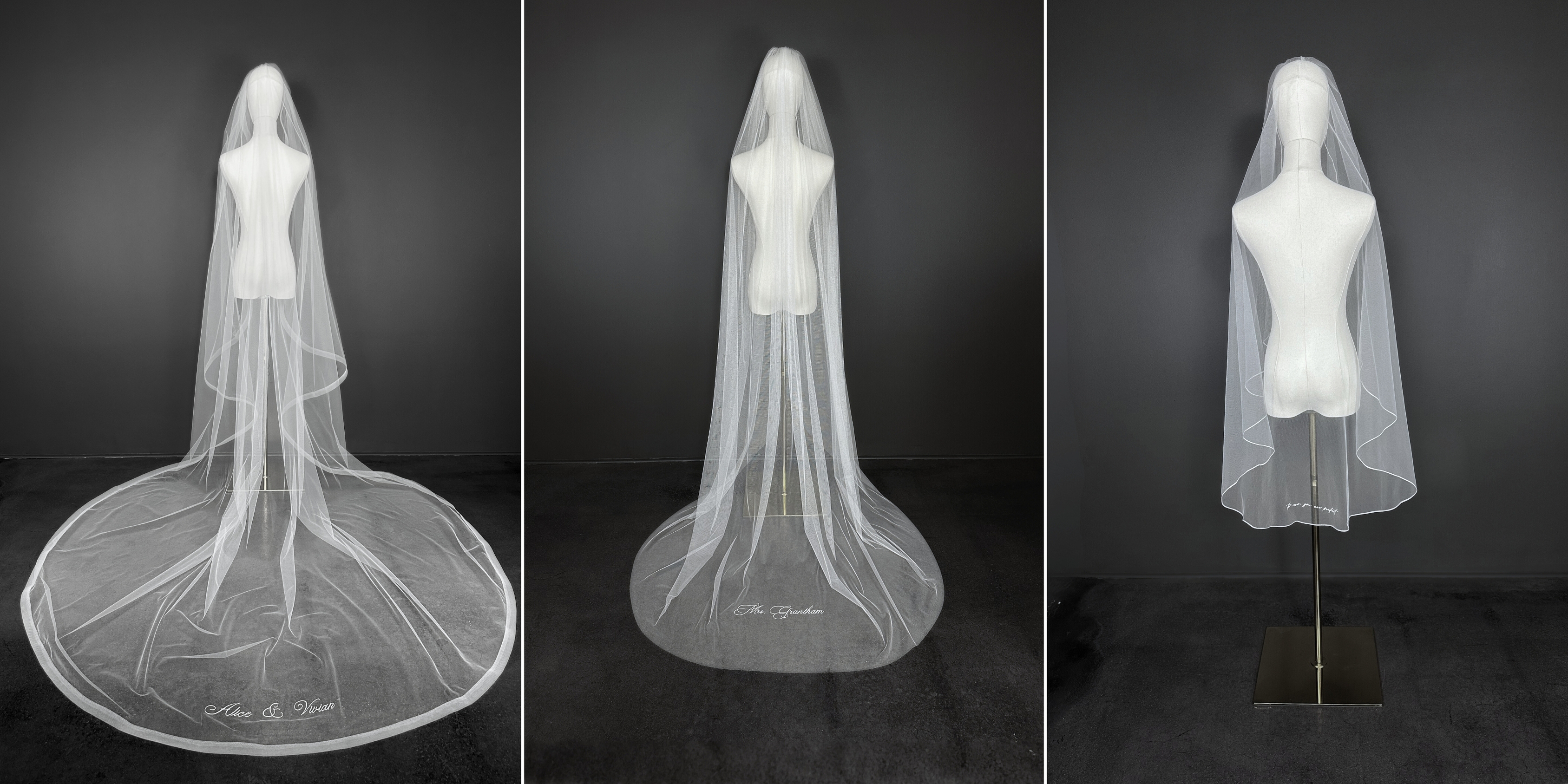 - Your bride can embroider anything she wants onto any veil in our collection – the personalization options are endless!