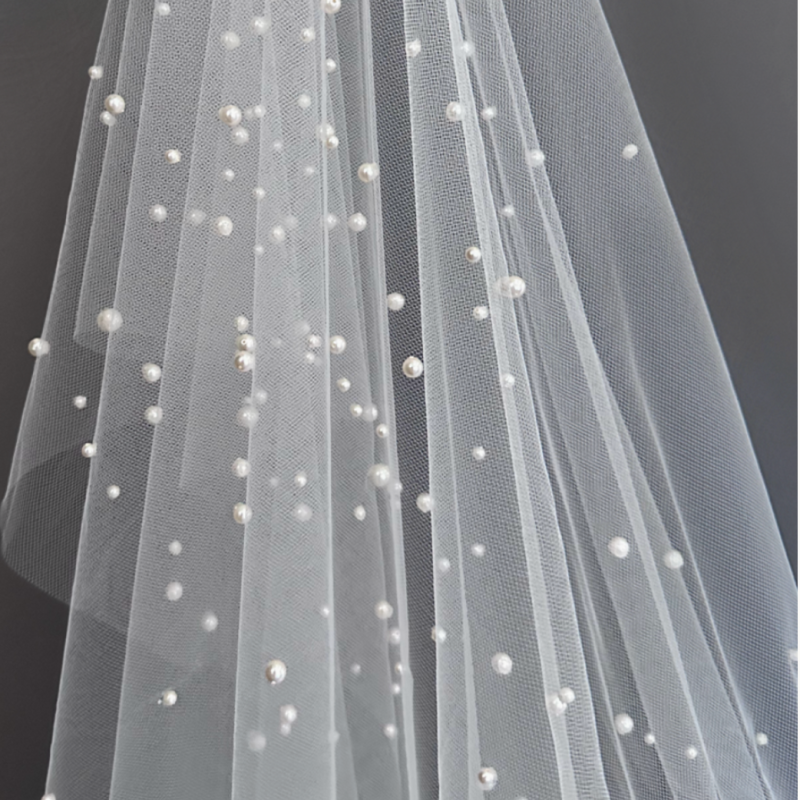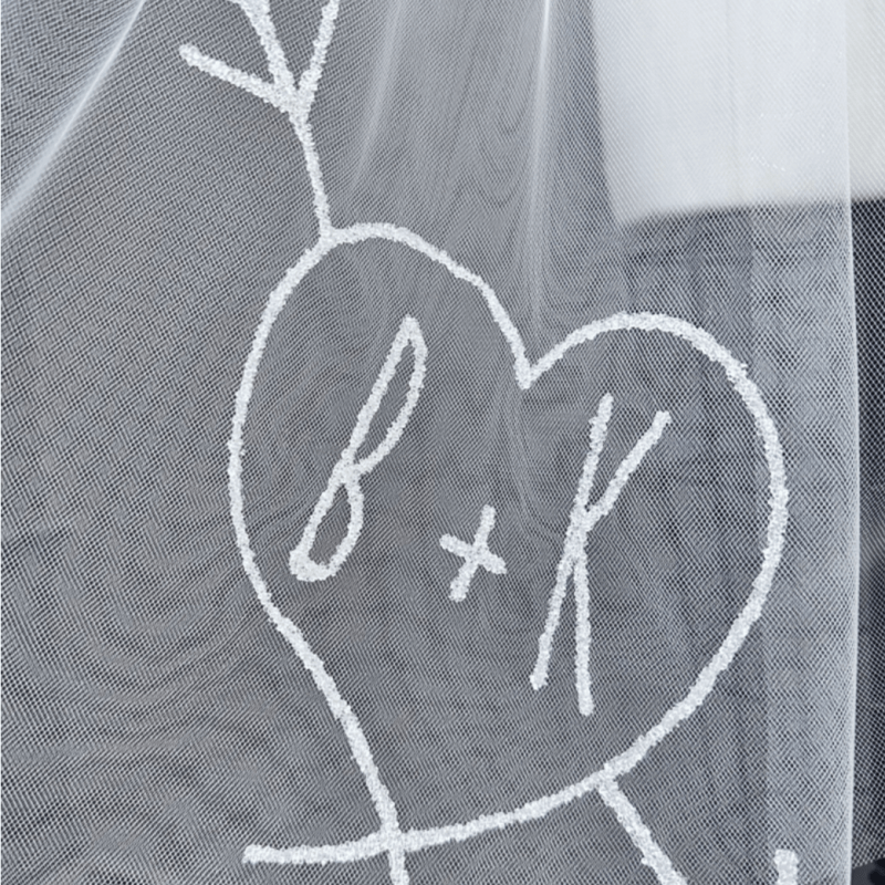 That means you can have the gorgeous pearl gradient of our bestselling Rosa veil, the sweet “crochet” trim of our Lesley veil, or even the romantic monogram of our Kendall veil added to your bride’s Flynn scarf. Anything your styling team can dream up with their brides, we can do!