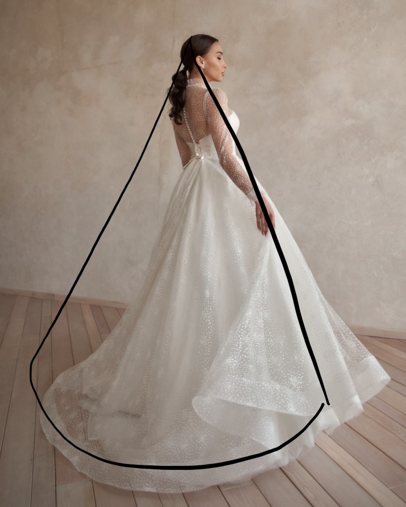 - Allow the tape measure to lay softly against the center back of her gown, the way the veil will. Do not pull it tight.