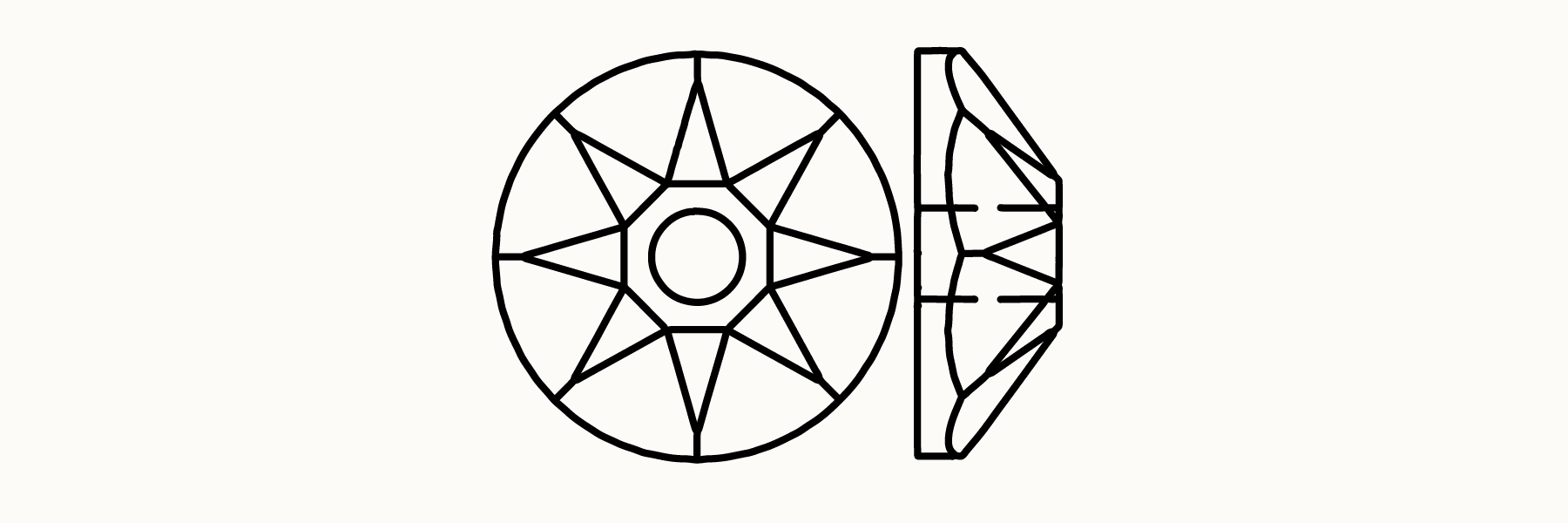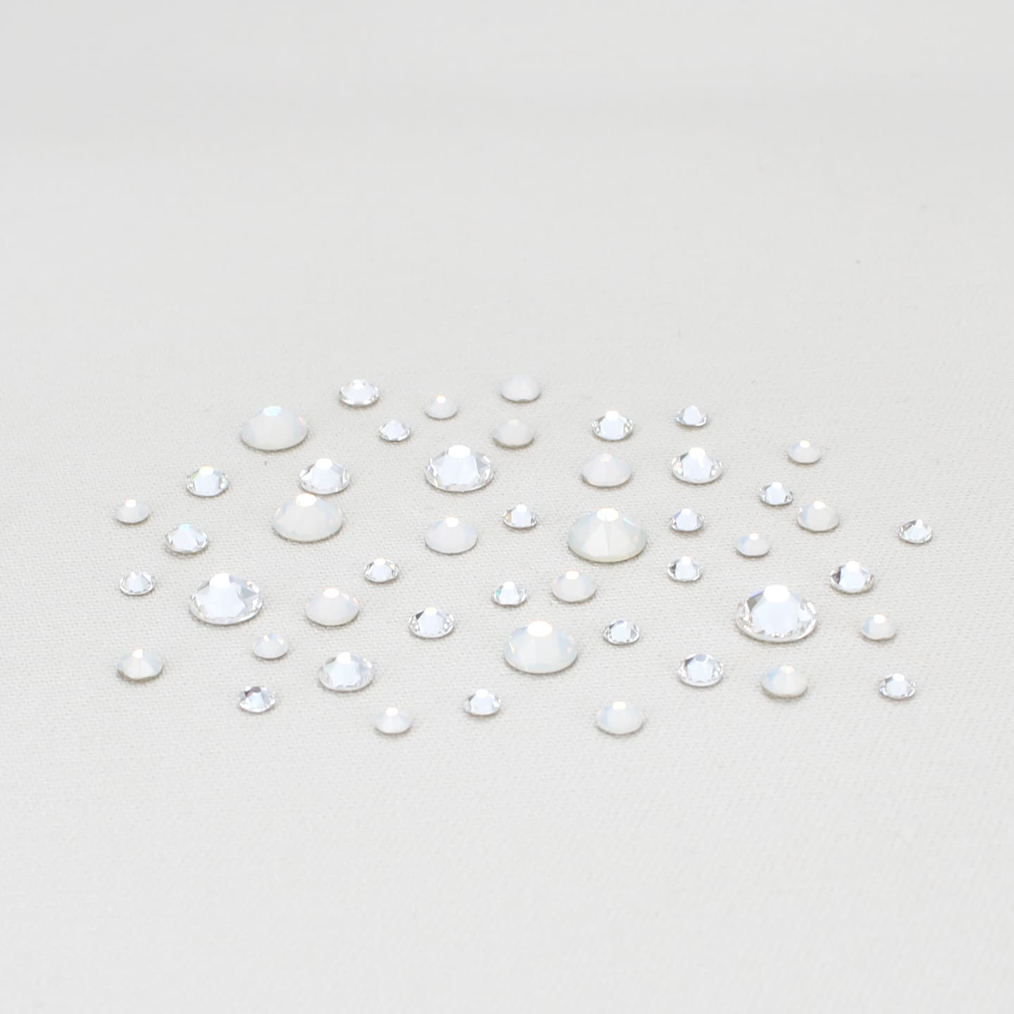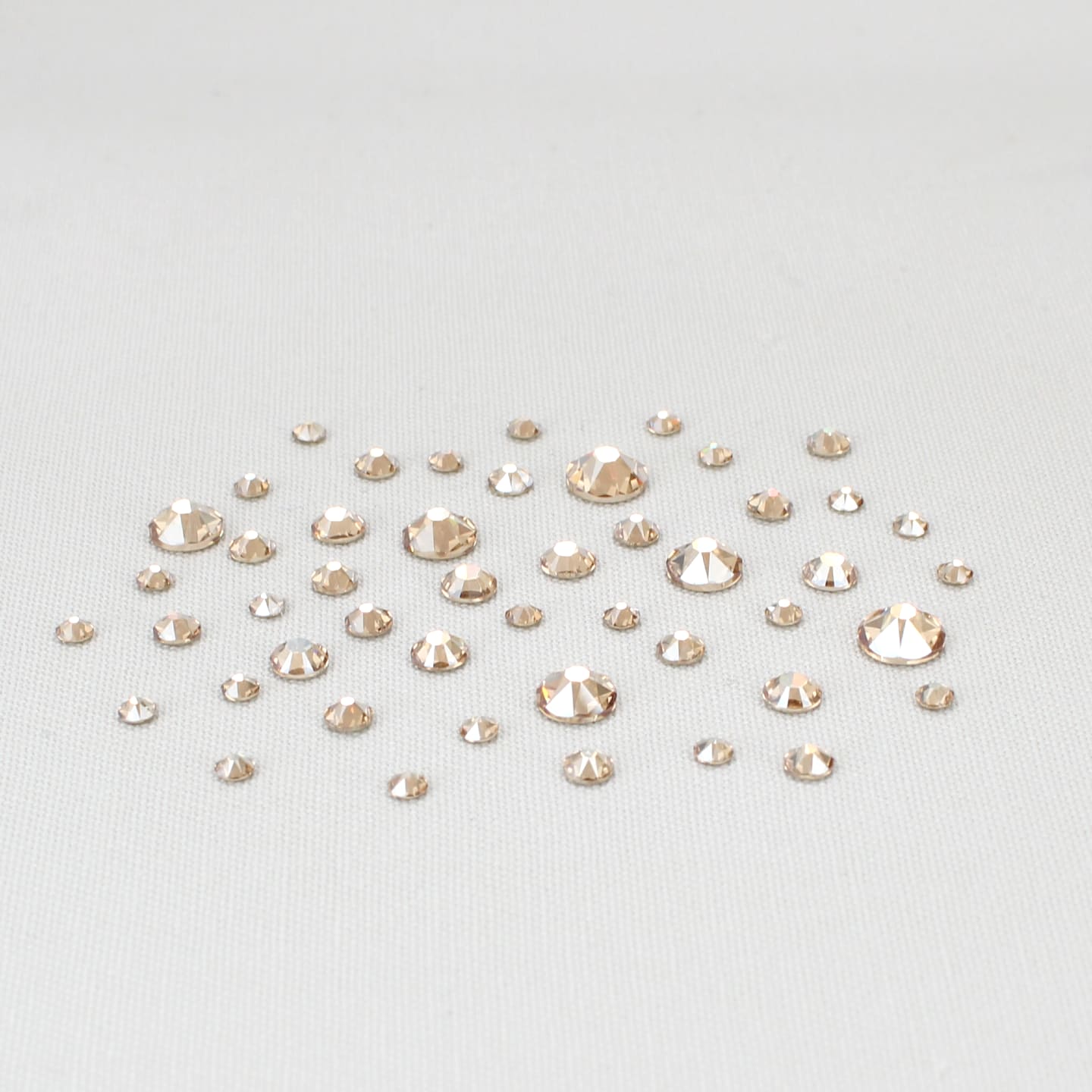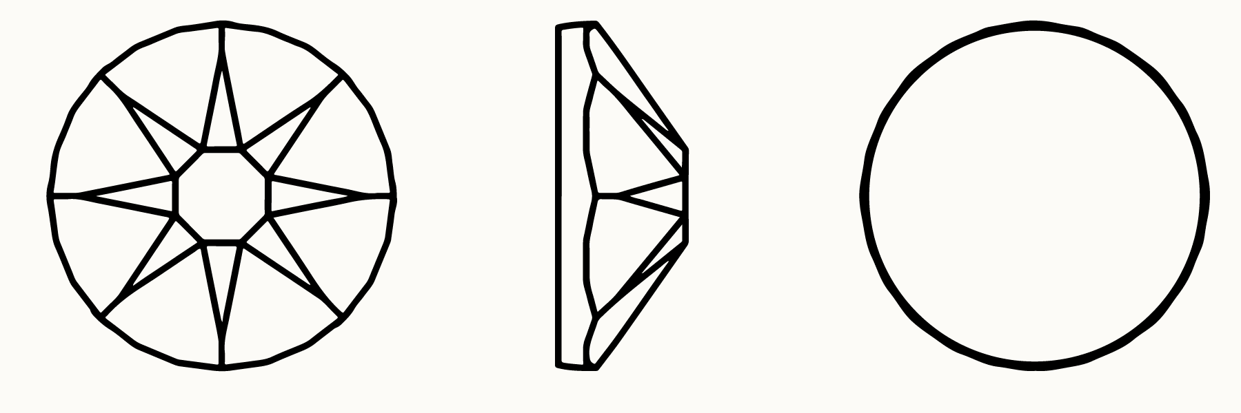 When we first saw how these jewels catch the light, we fell in love. Similar in shape to our rhinestones, but without the mirrored backing, these Swarovski® crystals are applied upside down for maximum impact. Something about the way the light reflects when they are placed this way – more sparkle than a bicone, but not as much as a rhinestone – captured our hearts.