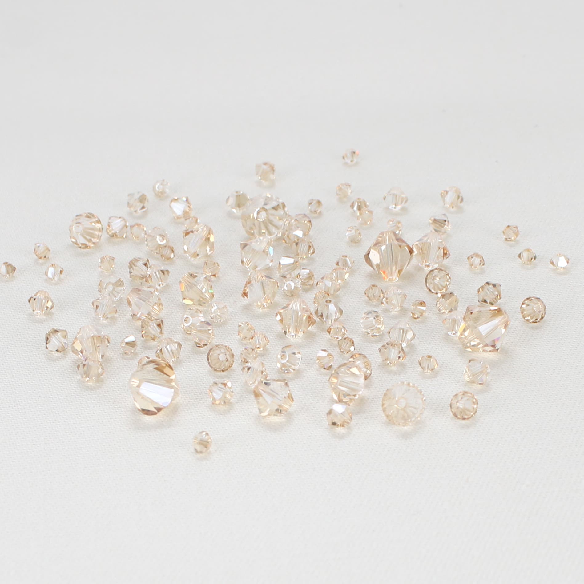 If you’ve ever wondered what a “bicone” is, you’re not alone. Bicone jewels are a shape of Swarovski® crystal that twinkles in the light with a true crystal sparkle, but doesn’t have the “bling” effect created by traditional rhinestones. Often reserved for jewelry creations, bicone jewels look equally stunning shimmering on the layers of a veil.